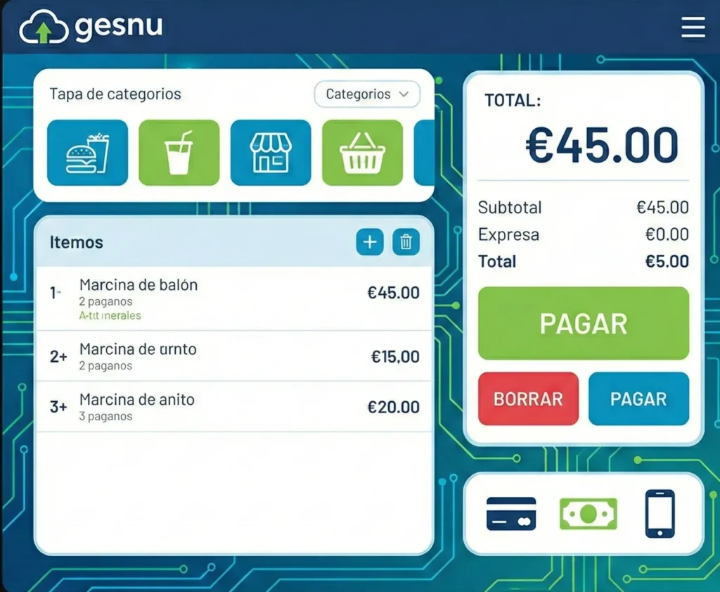 El TPV (Terminal Punto de Venta) de GESNU es un sistema de caja que te permite: